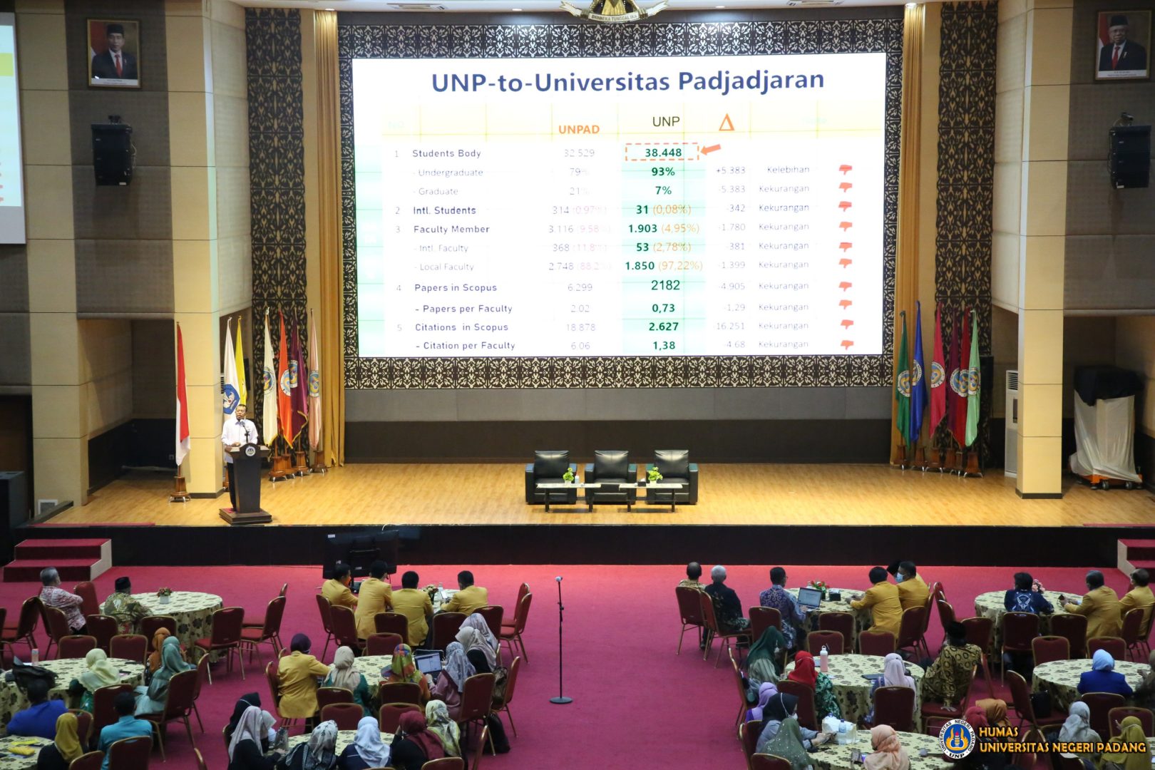 Rektor UNP Prof. Ganefri, Ph.D dalam sambutannya menyampaikan ” UNP sebagai PTNBH ditargetkan masuk ranking 1000 QS oleh Kemendikbud Ristek, dengan target ini UNP harus melompat dengan inovasi dan kerjasama. salah satu yang akan dilakukan adalah rekrutmen dosen kualifikasi S3 dan juga rekrutmen dosen dari 500 orang asisten dosen yang akan membantu pelaksanaan tridharma Perguruan Tinggi untuk Guru Besar, Lektor Kepala, Doktor dan Dosen Tugas Tambahan.