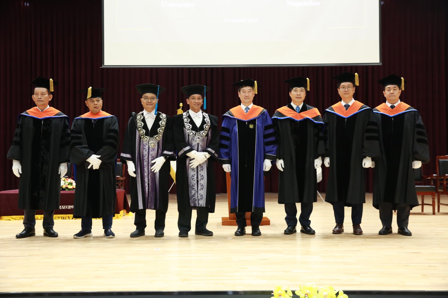 Menyambut kelulusan mahasiswanya, momen wisuda yang berlangsung di MNU Korea Selatan ini juga dihadiri langsung oleh sejumlah pimpinan ITS. Antara lain adalah Wakil Rektor IV ITS Bambang Pramujati ST MSc Eng PhD, Dekan Fakultas Teknologi Kelautan (FTK) ITS Dr Eng Trika Pitana ST MSc, perwakilan dosen Teknik Perkapalan ITS Prof Dr I Ketut Aria Pria Utama MSc, dan Kepala Departemen Teknik Mesin ITS Dr Ir Atok Setiyawan MEng Sc. (HUMAS ITS)