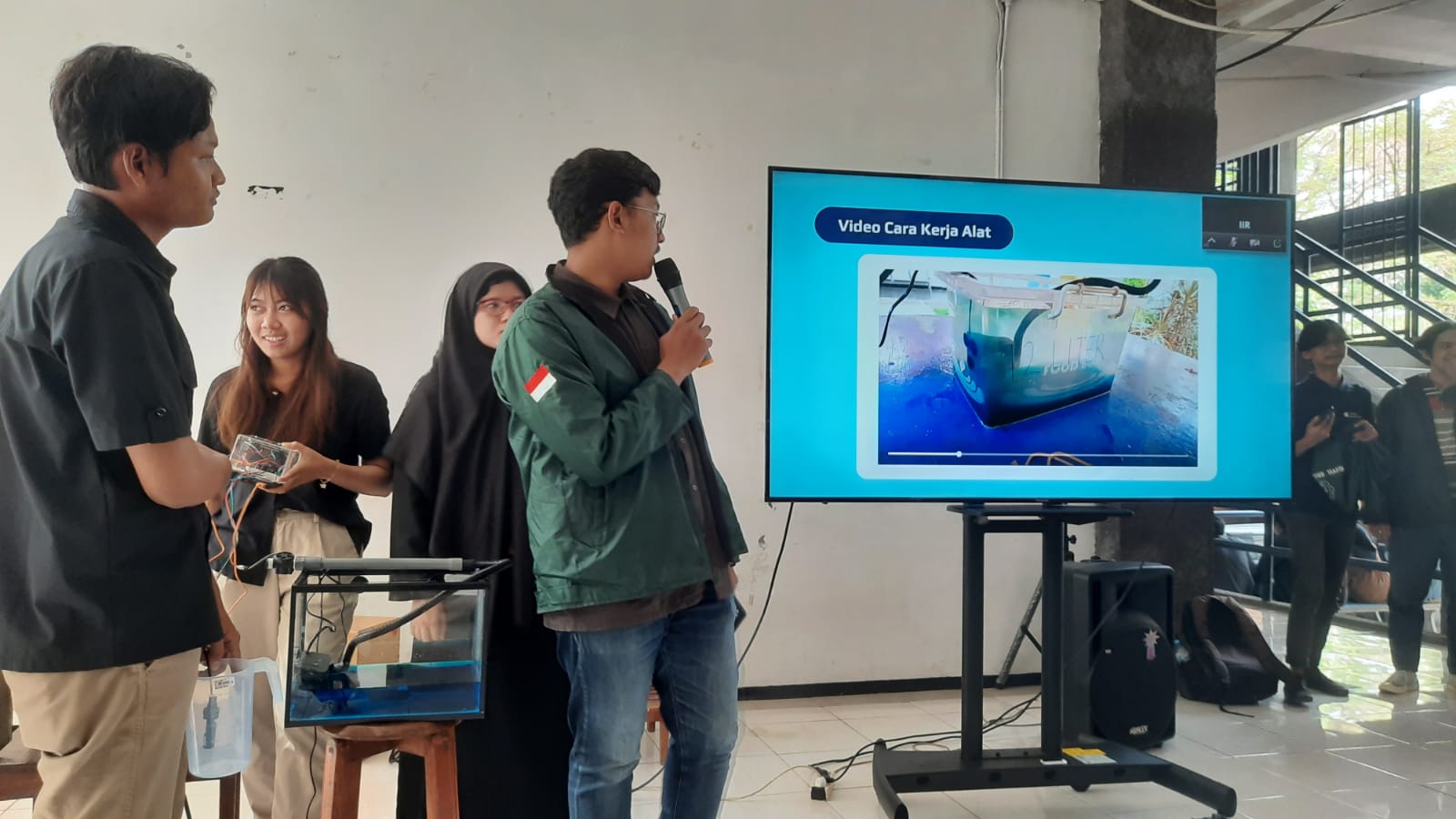 Potret mahasiswa Fakultas Vokasi (FV) Institut Teknologi Sepuluh Nopember (ITS) saat mendemonstrasikan prototipe di gelaran pameran Aplikasi Teknologi Cerdas (ATC) untuk melatih mahasiswanya dalam menghadapi dunia industri 4.0