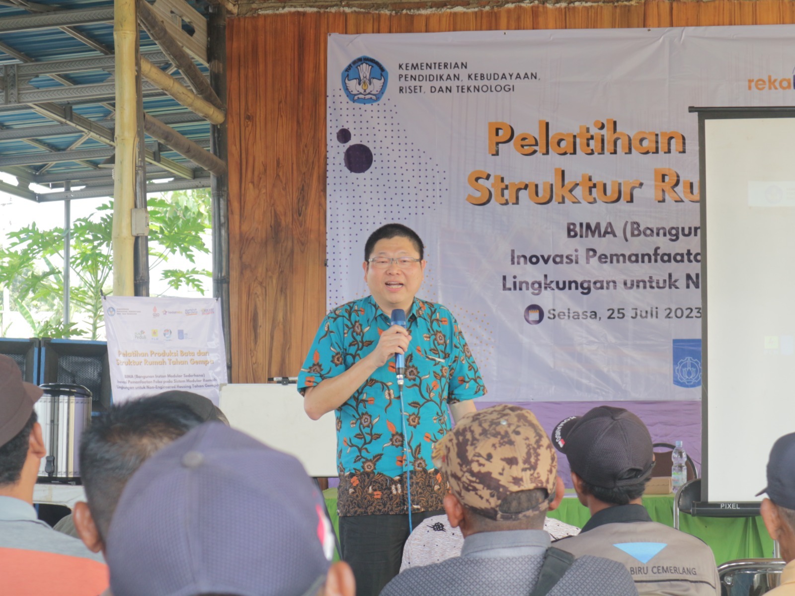 Para peserta pelatihan juga dibekali edukasi mengenai rumah tahan gempa oleh Ir. Faimun MSc PhD, ahli gempa dari Teknik Sipil ITS. Faimun memaparkan tentang gambaran umum gedung fungsi hunian berupa rumah tahan gempa. Ia menggarisbawahi betapa pentingnya membangun konstruksi yang kuat dan aman dalam menghadapi potensi bencana gempa.