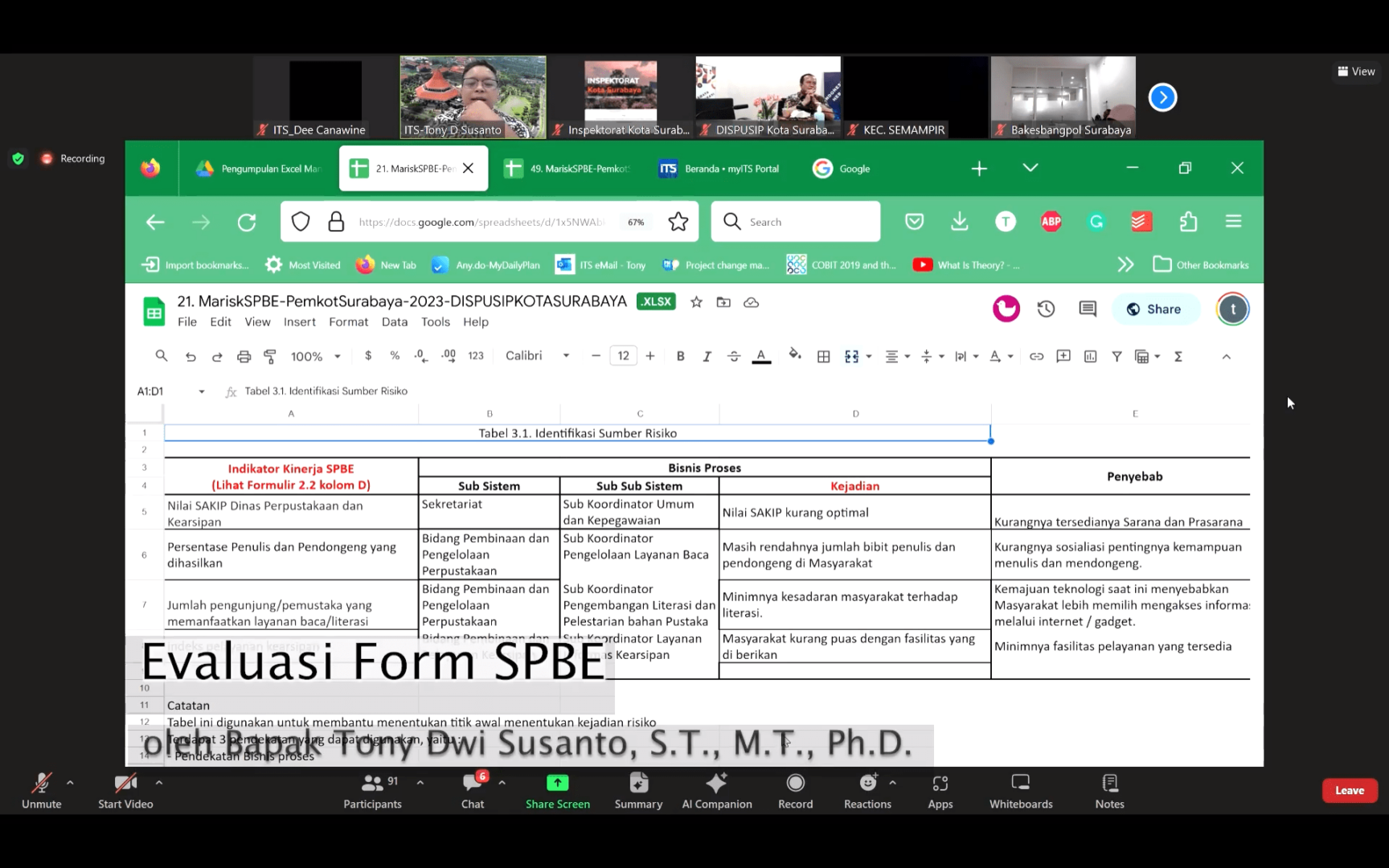 Pendampingan manajemen risiko SPBE Pemerintah Kota Surabaya oleh KKN Abmas ITS