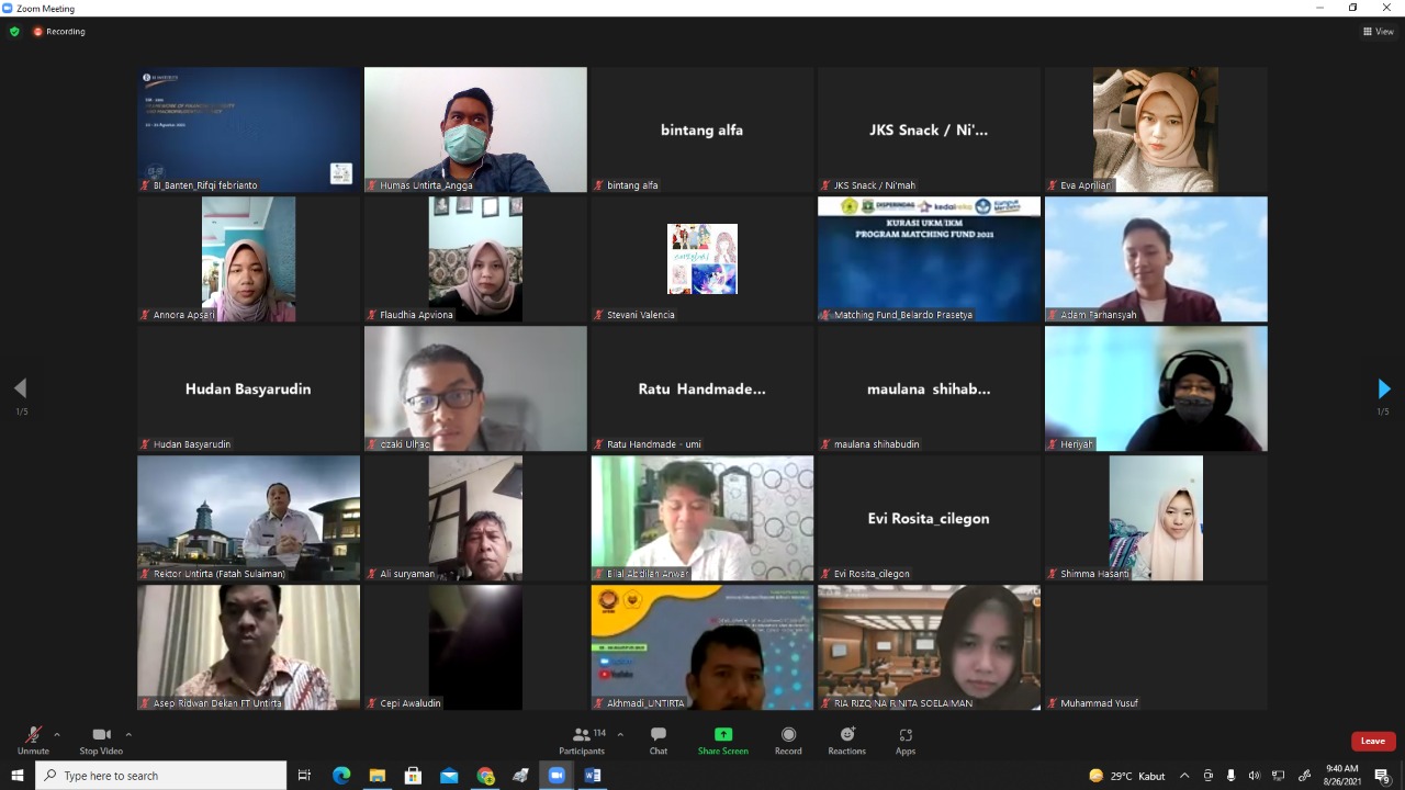Acara dilanjutkan dengan pembekalan tentang program Matching Fund MBKM 2021 oleh Dr. Inge Dwisvimiar, SH., M.Hum dan beberapa narasumber dari unsur pemerintah dan dunia usaha. Tema matching fund 2021 Untirta yaitu implementasi rekacipta kekayaan intelektual pada UKM/IKM binaan Provinsi Banten dalam mewujudkan akselerasi program Merdeka Belaja Kampus Merdeka (MBKM).