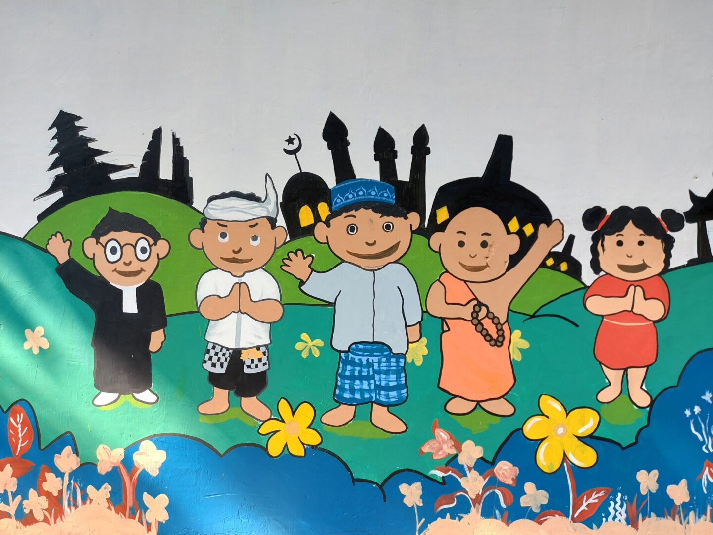 Visualisasi gambar mural media pembelajaran keberagaman bangsa di TK Pertiwi II Ngeni, Blitar