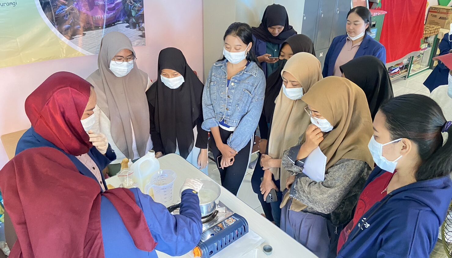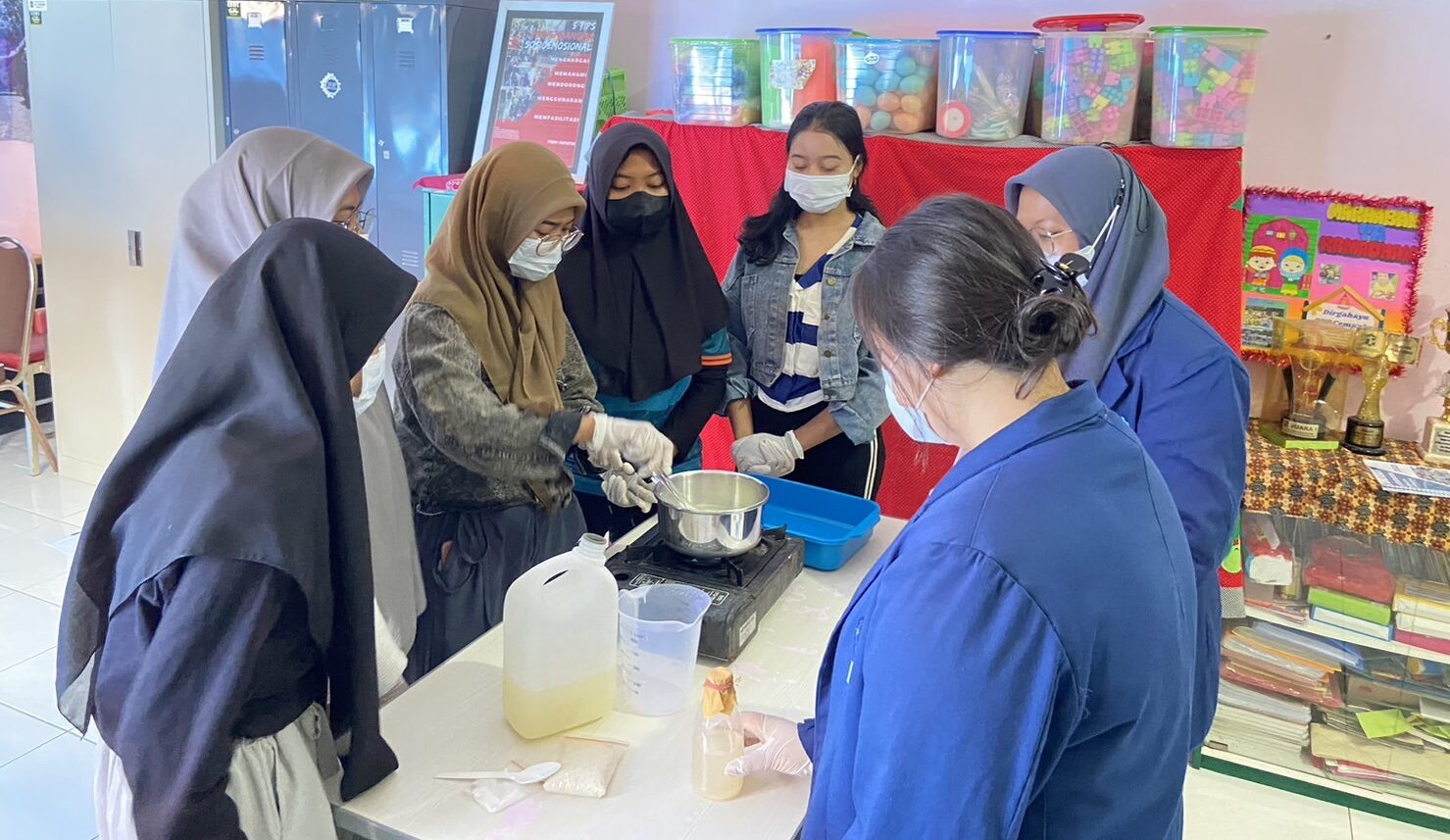 Pengolahan limbah tahu menjadi Nata de Soya ini dipilih Aliefia dan tim karena proses pembuatannya yang mudah. Nata de Soya sendiri adalah makanan berbentuk nata yang padat, putih dan transparan. Aliefia bercerita, timnya pun melakukan sosialisasi tentang proses pembuatan, manfaat, dan kandungan gizi yang dimiliki produk olahan sisa kedelai tersebut. “Selanjutnya, praktik pembuatan Nata de Soya dilakukan bersama karang taruna,” tuturnya.