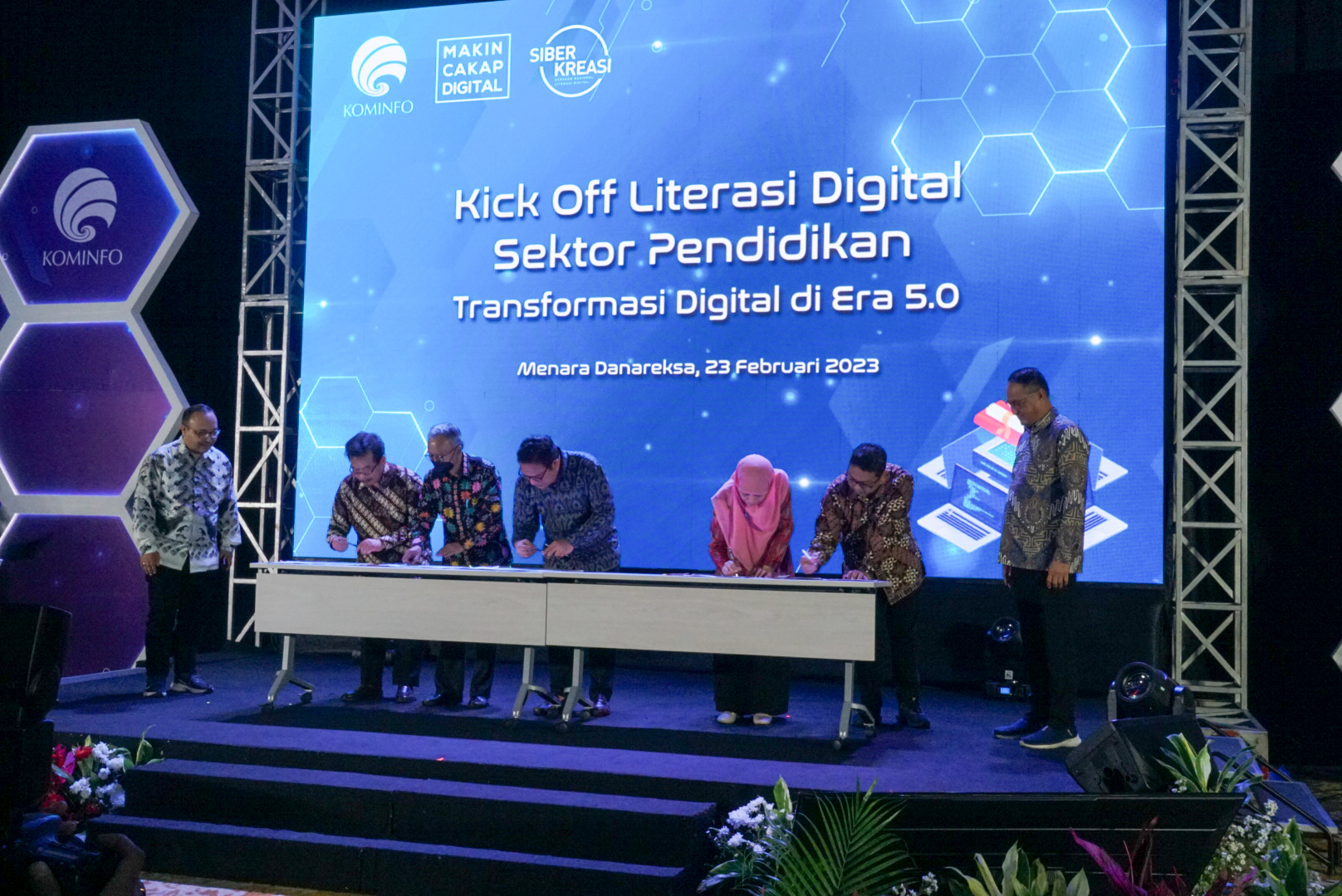 Penandatanganan Perjanjian Kerja Sama bersamaan dengan Kick Off Literasi Digital Sektor Pendidikan: Transformasi Digital di Era 5.0. yang dilaksanakan pada Kamis, 23 Februari 2023 bertempat di Arya Nusa Ballroom 2,3 – Menara Danareksa Jalan Medan Merdeka Selatan No.14 Jakarta Pusat, pukul 18.00 WIB sampai dengan selesai. Selain Rektor ISI Yogyakarta Kick Off Literasi Digital Sektor Pendidikan: Transformasi Digital di Era 5.0. juga dihadiri oleh 28 pimpinan perguruan tinggi negeri dan swasta.