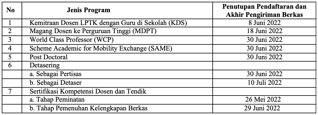 Penawaran Program Kompetensi Dosen dan Tenaga Kependidikan Tahun 2022